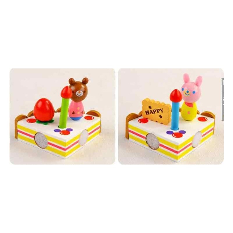 Jucarie din lemn feliatoare in forma de tort. Lasa-l pe cel mic sa dea frau liber imaginatiei, lumanarile si decorurile pot fi date jos si combinante in zeci de variante.